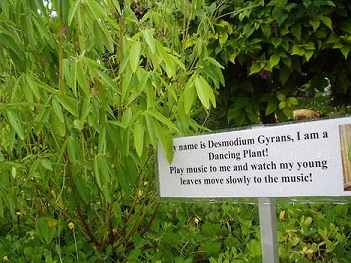 跳舞草學(xué)名為“Desmodium Gyrans”。這種植物最奇異的特點(diǎn)就是葉片會(huì)隨溫度變化或音樂伴奏而上下舞動(dòng),因此得名“跳舞草”。當(dāng)跳舞草受到陽(yáng)光直射時(shí)或是處于較溫暖的環(huán)境下,它們就會(huì)快速地舞動(dòng)自己的葉子。當(dāng)音樂響起時(shí),跳舞草也會(huì)做出一些反應(yīng)。在跳舞草每一片葉子的根部,都有一個(gè)相當(dāng)于鉸鏈裝置的結(jié)構(gòu),葉子可以圍繞它沿著橢圓形路徑旋轉(zhuǎn)。