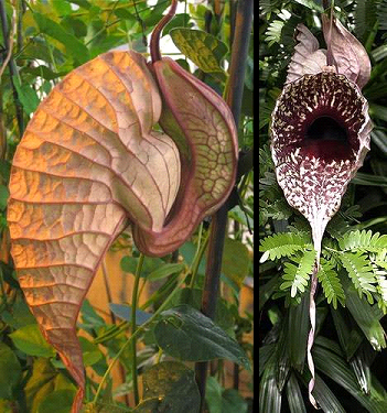 巨花馬兜鈴學(xué)名為“Aristolochia grandiflora”。這種植物的奇特之處在于它們美麗而怪異的花朵?;ǘ涞闹饕糠种挥幸黄雌饋?lái)好象是一個(gè)巨大的、帶有紋理的兜狀物,而不像普通的花朵那樣擁有對(duì)稱的花瓣。觀賞者千萬(wàn)不要太靠近它,否則它所發(fā)出的死老鼠味道會(huì)在你們身邊數(shù)小時(shí)不散。不過,巨花馬兜鈴雖然會(huì)發(fā)出死老鼠味道,但它們并不像巨型豬籠草那樣吃老鼠,它們這種氣味不過是用來(lái)吸引傳粉昆蟲幫助它們傳粉而已。