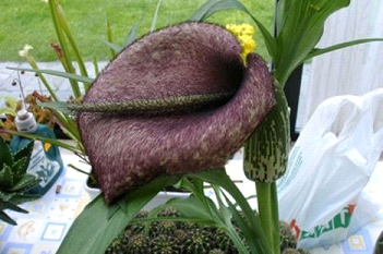 尸花學(xué)名為“Amorphophallus titanum”,有時(shí)也被稱為“泰坦魔芋花”。尸花是世界上體型最大的花,也是氣味最臭的花,原產(chǎn)于印度尼西亞蘇門答臘島的熱帶雨林中。它們會(huì)釋放出一種腐爛的尸體的味道,這也是“尸花”名稱的來(lái)源。它們散發(fā)臭味也是為了吸引昆蟲前來(lái)傳粉。這種花的葉結(jié)構(gòu)高度最高可達(dá)20英尺(約合6.1米),寬度最高可達(dá)16英尺(約合4.9米)。